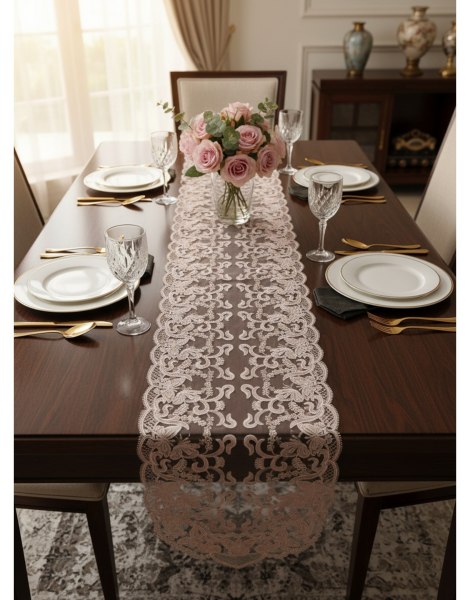 Fiori di Lena - Runner in pizzo con farfalle rosa