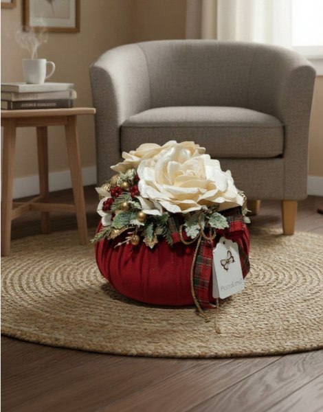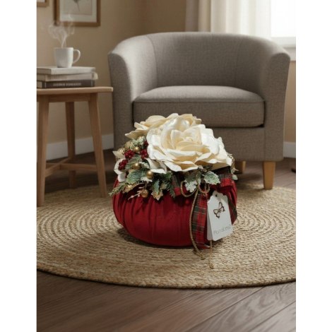 Fiori di Lena - Pouff Velluto nocciola con 2 rose velluto d 24 cm