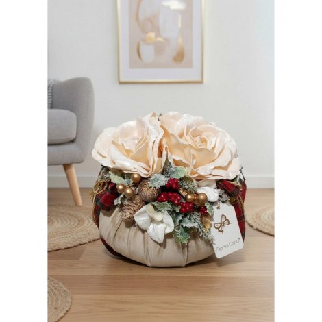 Fiori di Lena - Pouff Velluto nocciola con 2 rose velluto d 24 cm