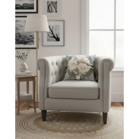 Fiori di Lena - Cuscino Verde in Lino - Con 3 Rose e Pizzo