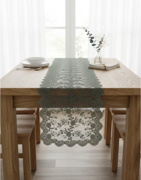 Fiori di Lena - Runner in Pizzo Verde Salvia - 1 mt