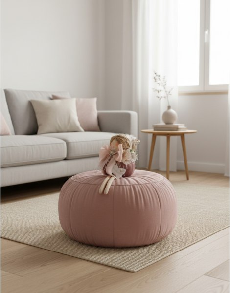 Fiori di Lena - Pouff grande in velluto rosa e bambolina diam.10