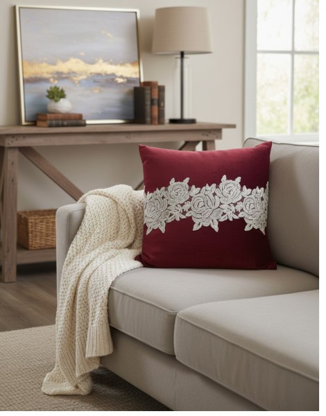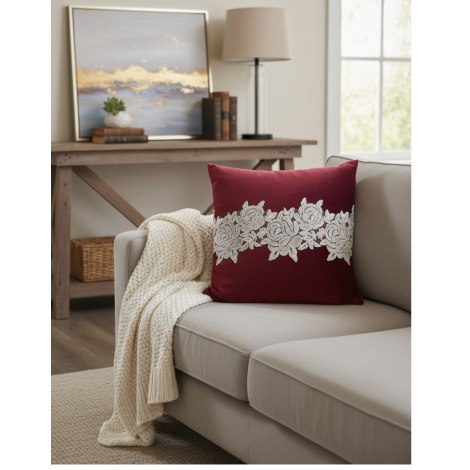 Fiori di Lena - Cuscino Velluto - Quadrato Bordeaux con Pizzo
