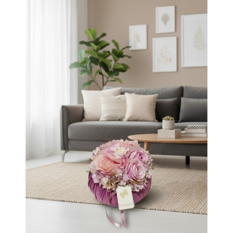 Fiori di Lena - Pouff in velluto fucsia con rose rosa  - diametro 18