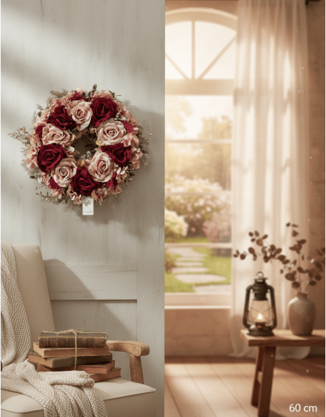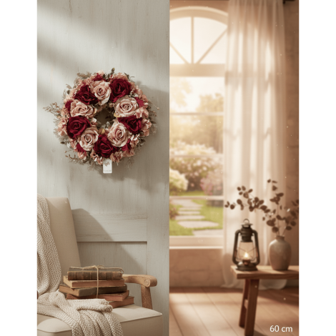 Fiori di Lena - Pouff Velluto Bordeaux 4 Rose Crema