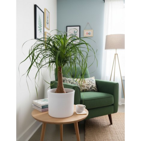 La Nolina Beucarnea, conosciuta anche come Mangiafumo, è una pianta da interno dal design unico ed elegante, perfetta per arredare case e uffici. Il suo tronco rigonfio e le lunghe foglie ricadenti la rendono molto decorativa, mentre la sua capacità di contribuire a purificare l’aria la rende anche funzionale. È una pianta estremamente resistente, adatta anche a chi non ha il pollice verde, perché richiede poca acqua e una manutenzione minima. Ama ambienti luminosi e si adatta facilmente a diversi spazi, portando un tocco naturale e moderno a ogni ambiente.